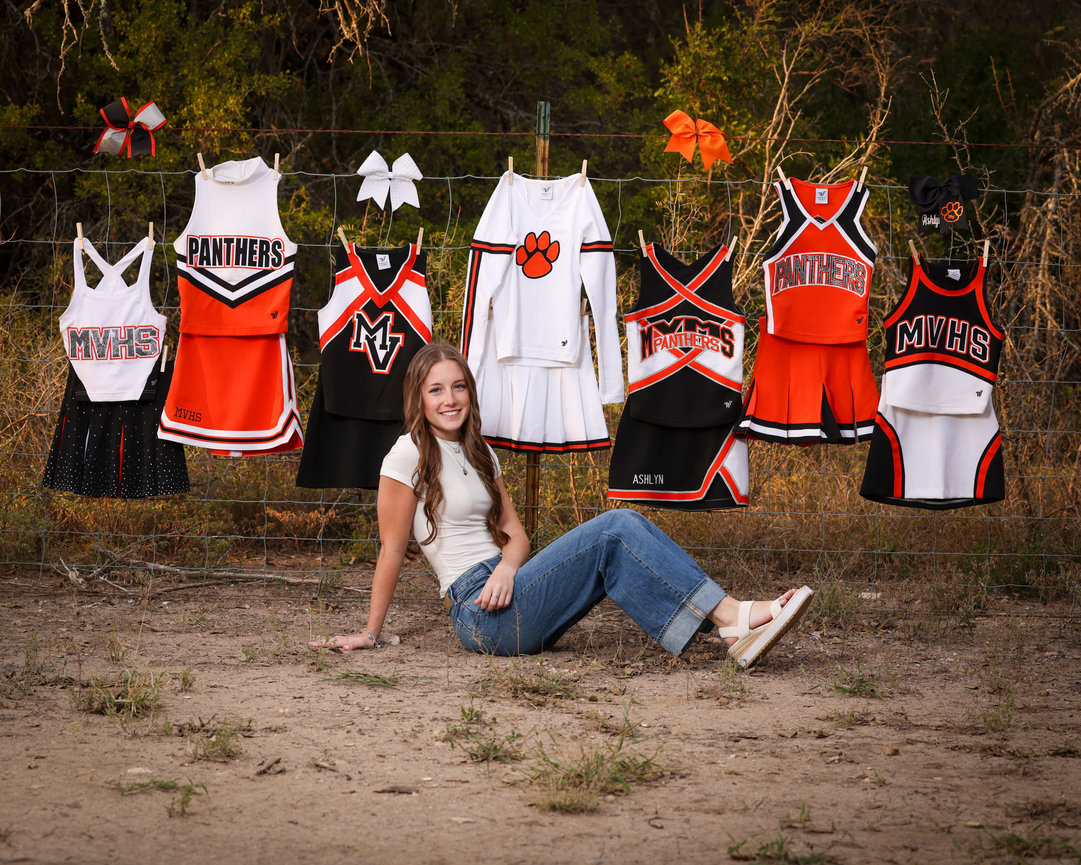 Senior Team members participate in a custom senior portrait session, a mini cap and gown session, along with two styled team shoots during the year, creating images that showcase their personality, friendships, and the excitement of senior year.